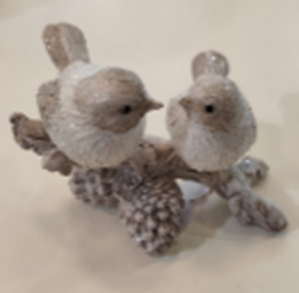 Um detalhe encantador para a sua decoração de Natal. Dois pássaros delicadamente pousados sobre um tronco com pinhas trazem um ar acolhedor e natural à composição.
