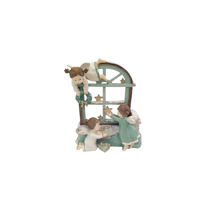 Uma peça delicada e luminosa que traz a magia natalícia para qualquer ambiente. A janela emoldura a cena de anjos iluminados por LED, criando um ambiente acolhedor e espiritual. Ideal para decorar mesas, aparadores ou dar um toque especial à árvore de Natal.