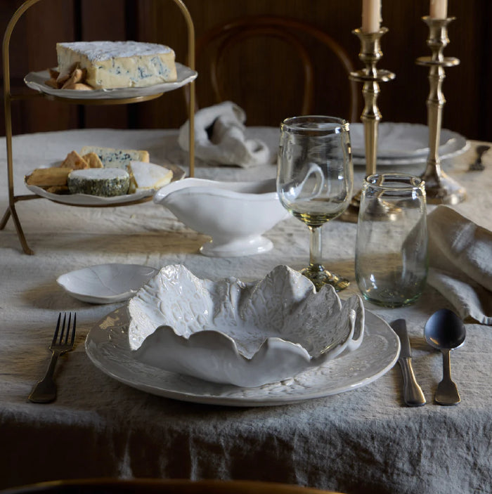 O Centro de Mesa Folha Silvina, produzido em grés fino, combina design inspirado na natureza com funcionalidade prática. Com formato de folha detalhado e acabamento artesanal, é perfeito para servir petiscos, sobremesas ou como peça decorativa de destaque em qualquer mesa.