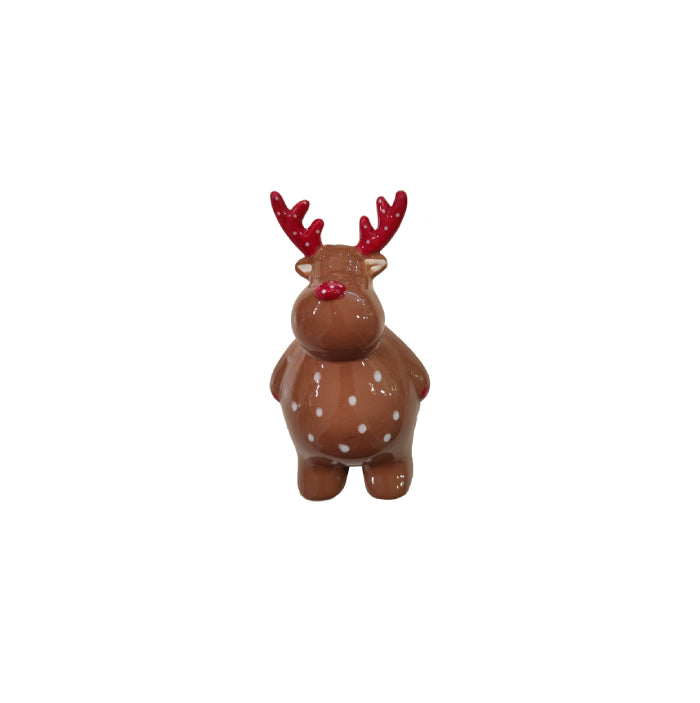 Adorno natalino em formato de rena castanha, com design delicado e acabamento rústico. Uma peça charmosa que transmite aconchego e elegância à decoração de Natal.