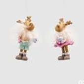 Charmosa rena decorativa com acabamento em plumas, que adiciona leveza e um toque lúdico à decoração natalina. Ideal para mesas, aparadores ou como detalhe pendente na árvore de Natal.