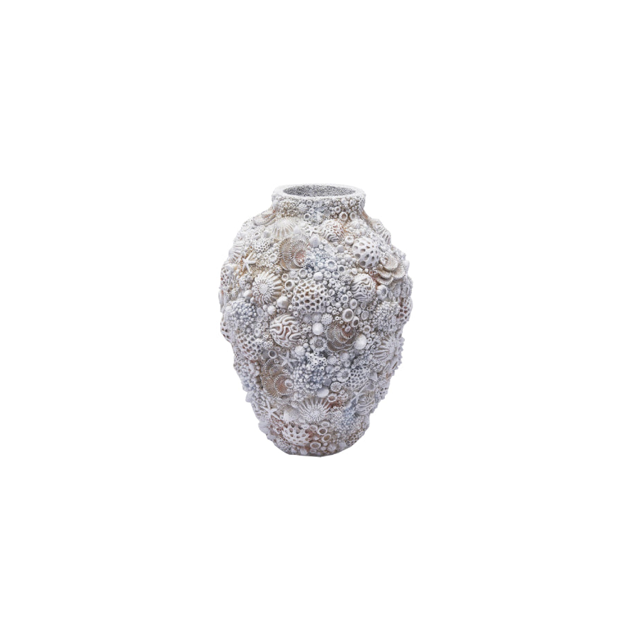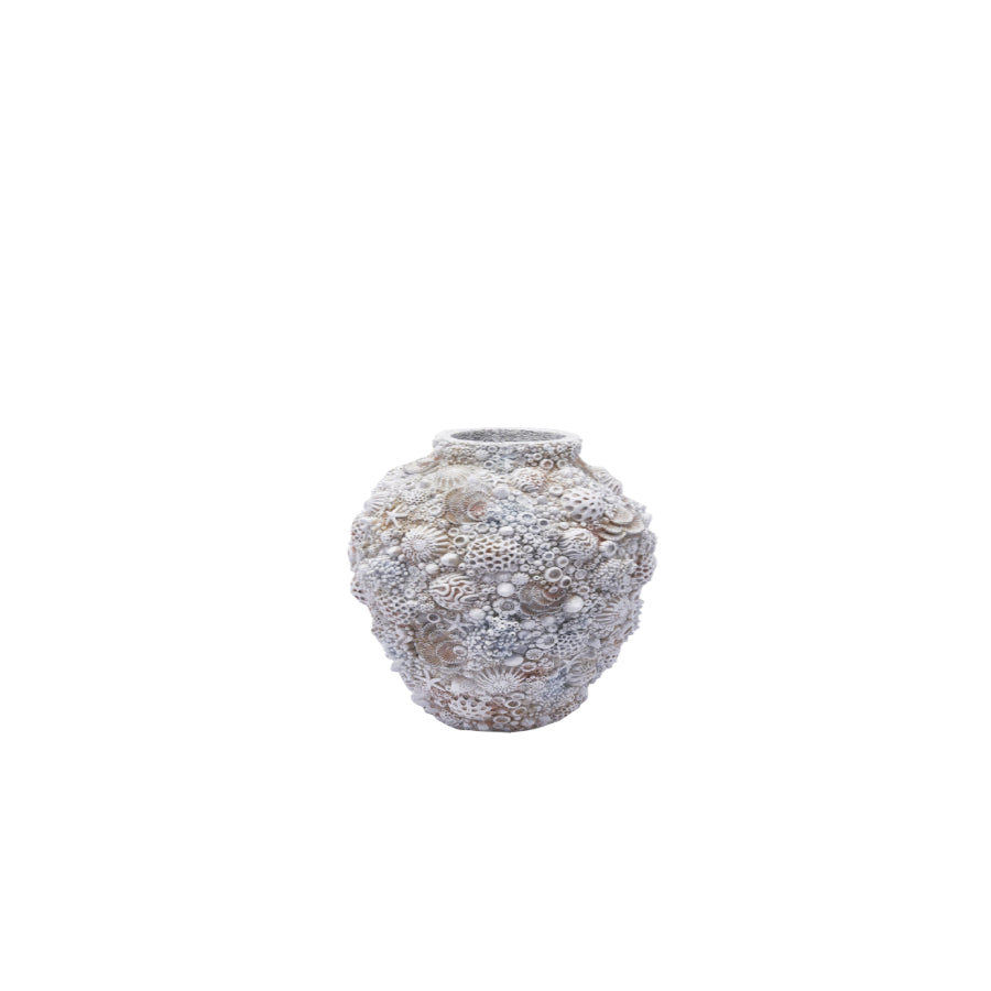 Vaso decorativo em formato de concha, com design elegante e contemporâneo que combina sofisticação e naturalidade. É uma peça versátil que se destaca tanto isoladamente como em composições com flores, plantas artificiais ou naturais.