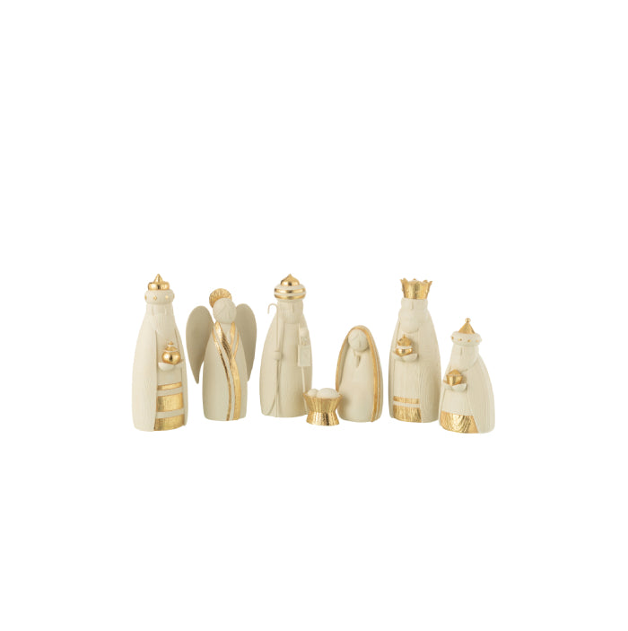 Celebre o verdadeiro espírito do Natal com este presépio composto por sete peças ricamente detalhadas. Produzido em resina de alta qualidade, combina tons suaves de branco com delicados acabamentos dourados, transmitindo elegância, serenidade e devoção.