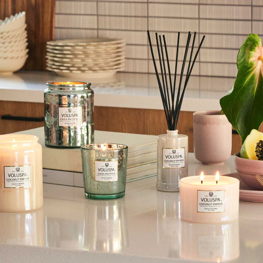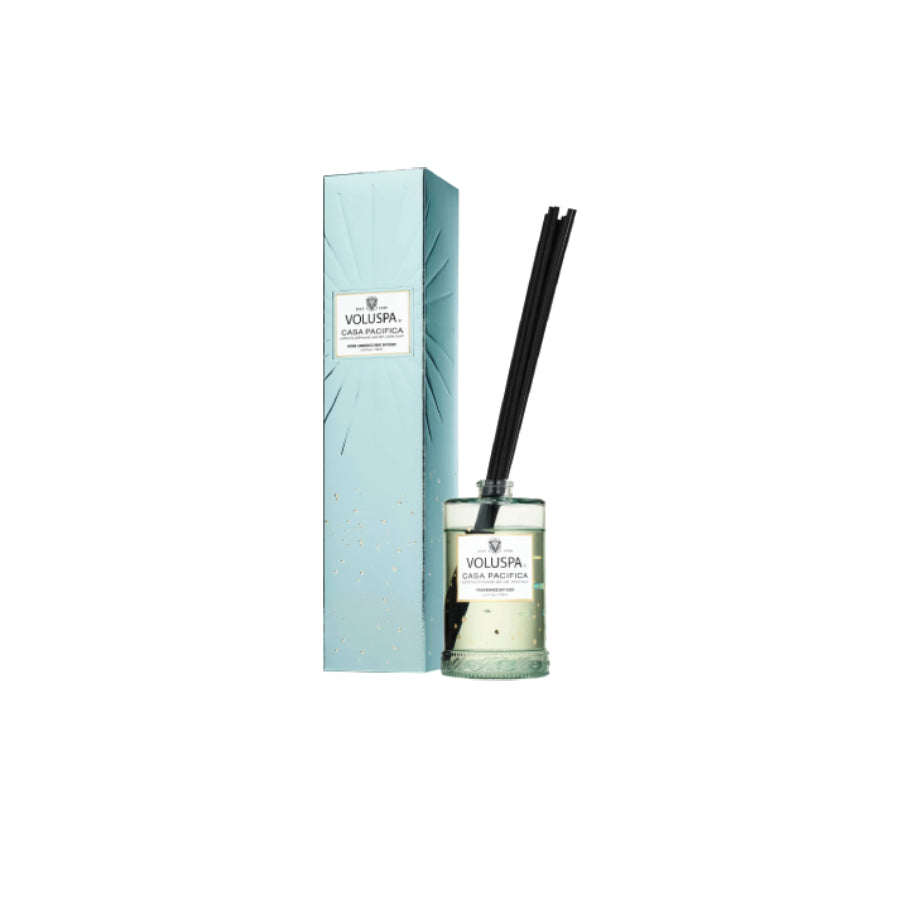 Transforme o seu espaço com a frescura serena de Casa Pacifica, uma fragrância aquática que evoca a calma da costa californiana. Notas de madeira à deriva, sal marinho e vegetação costeira misturam-se numa composição leve e revigorante, que transporta os sentidos para um cenário de brisa oceânica e areia quente.