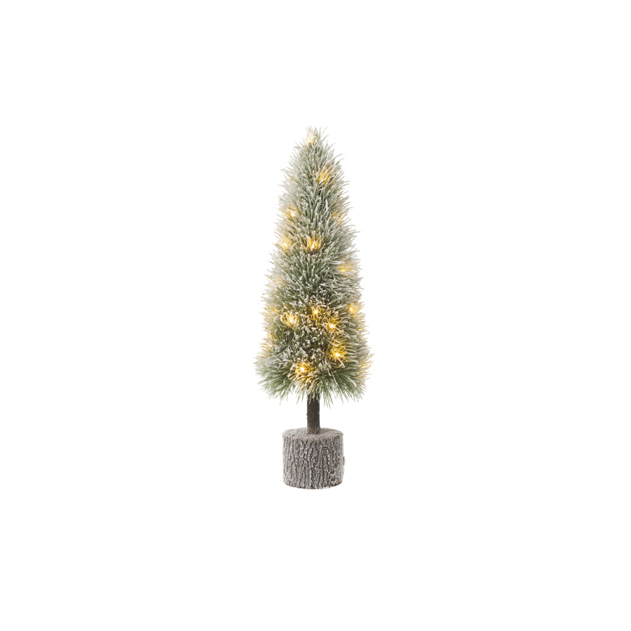 Esta árvore decorativa em verde clássico com efeito de neve e iluminação LED integrada é a escolha perfeita para adicionar um toque acolhedor e festivo à sua decoração natalícia. Compacta e versátil, é ideal para mesas, aparadores ou entradas.
