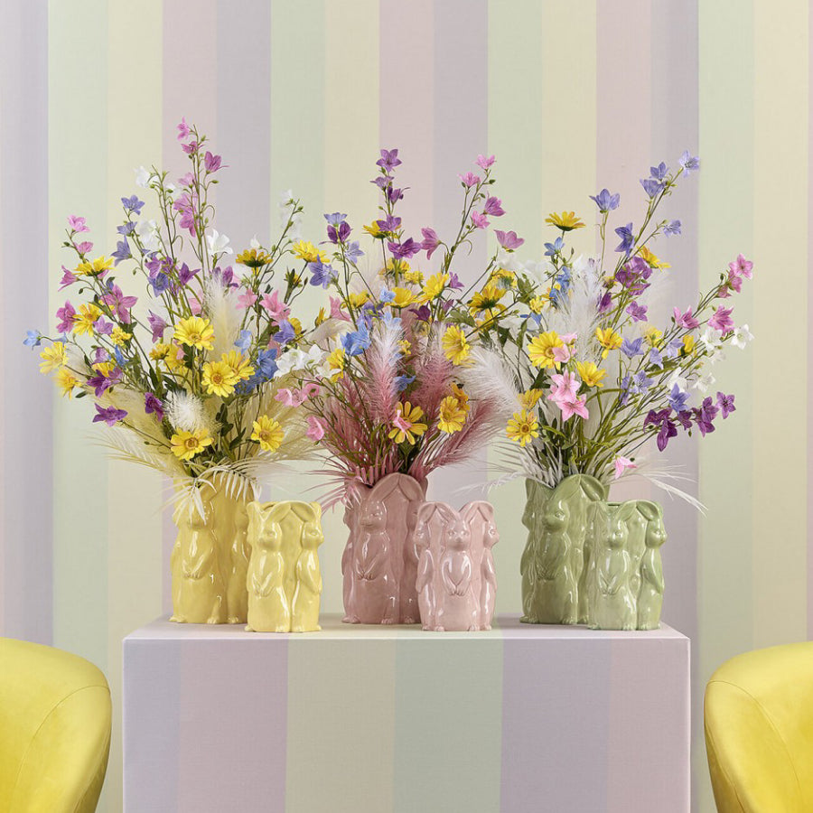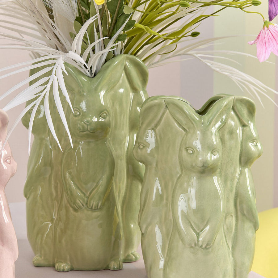 Jarra decorativa de Páscoa com motivo de coelho, ideal para flores, ramos ou como peça decorativa independente. O seu design temático e acabamento cuidado tornam esta peça perfeita para acrescentar um toque alegre e festivo à decoração.