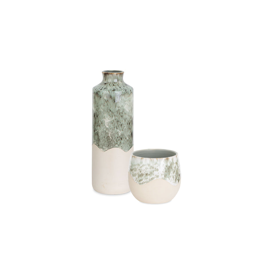 Jarra decorativa em esmalte verde, elegante e versátil, ideal para flores, ramos ou como peça decorativa independente. O seu acabamento cuidado e design intemporal tornam-no perfeito para adicionar cor e sofisticação a qualquer ambiente.