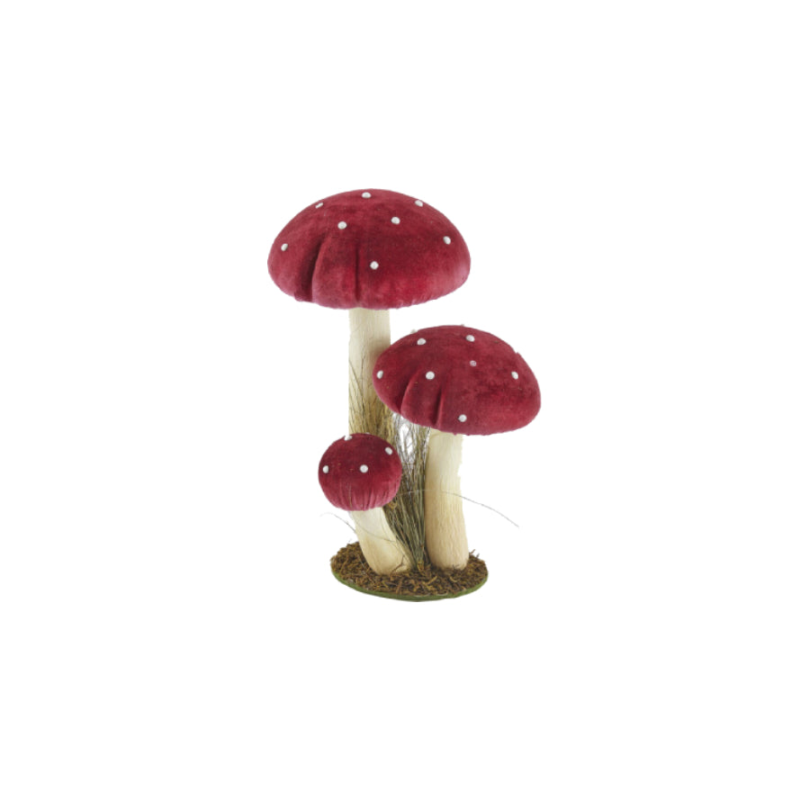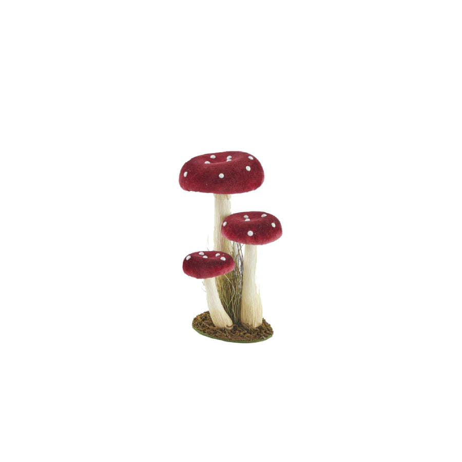 Estes adoráveis cogumelos decorativos trazem um toque de fantasia e charme à decoração natalícia. Com acabamento vermelho vibrante e pintas brancas clássicas, evocam o universo dos contos de fadas e da floresta mágica.