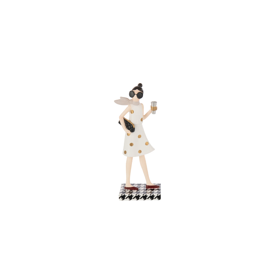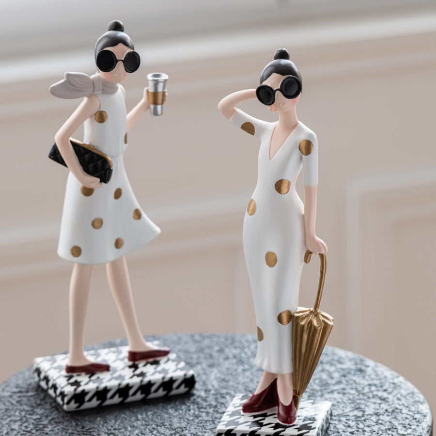 Elegante e moderna, esta figura feminina em tons cálidos com padrão pied-de-poule traz um toque de sofisticação clássica à decoração. Com linhas alongadas e postura graciosa, é uma peça decorativa que combina moda e arte.