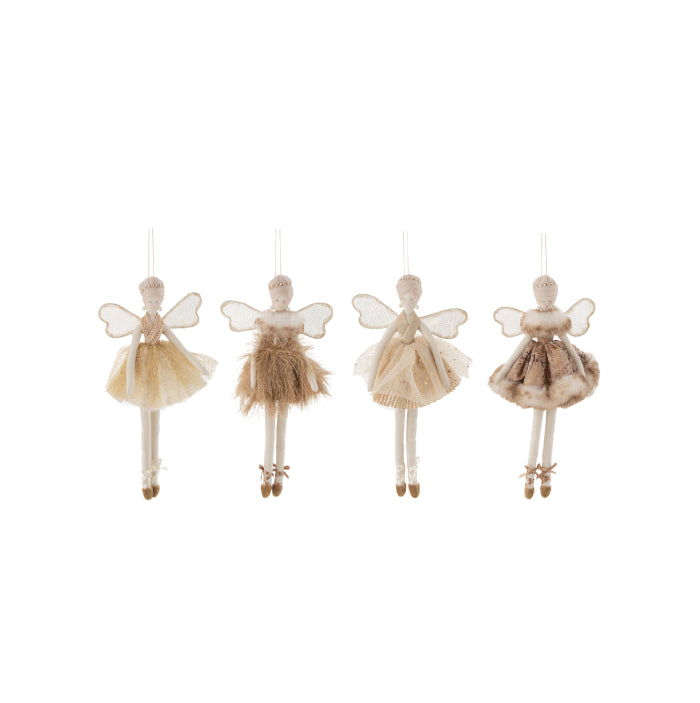 Delicadeza e graça em um enfeite encantador. Esta bailarina anjo em tons bege traz leveza e sofisticação à decoração de Natal, combinando movimento e elegância.