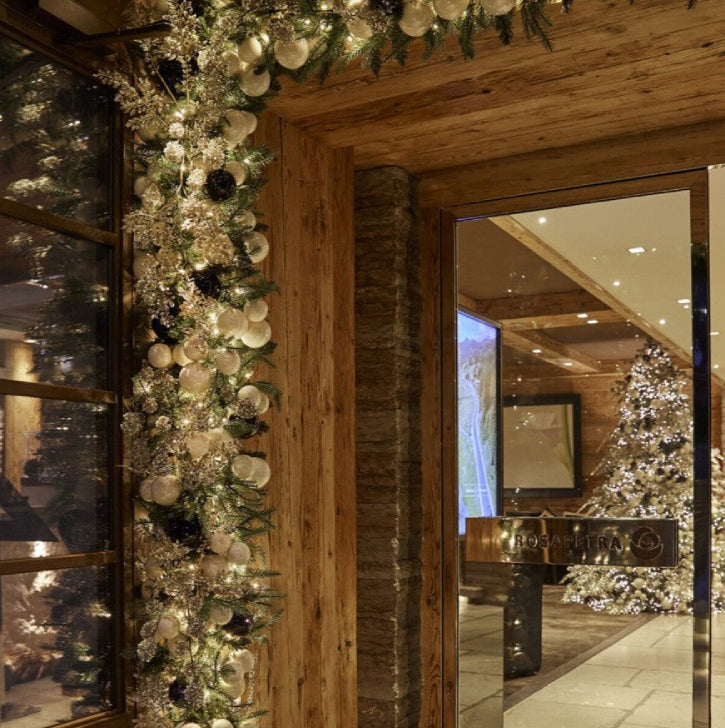 Combine com bolas douradas ou brancas para um efeito elegante;