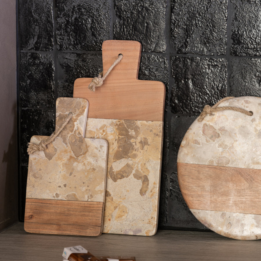 Celebre a simplicidade sofisticada com este tabuleiro quadrado em tons bege e natural, que imita a beleza orgânica do mármore. Com um acabamento suave e cores neutras, é a peça perfeita para complementar qualquer espaço com elegância serena.